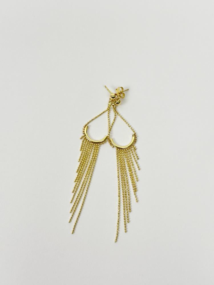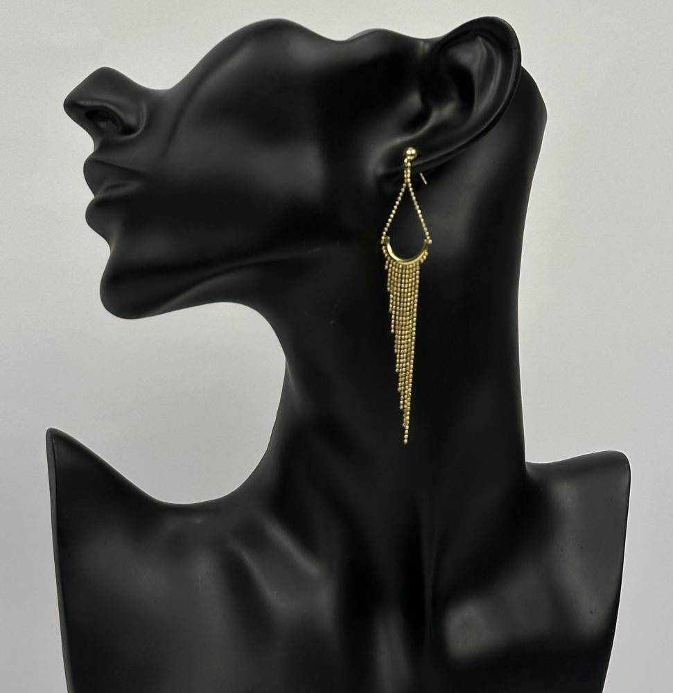 قرط فاخر بتصميم متدلي أنيق مزين بالسلاسل الذهبية اللامعة، لإطلالة فخمة وجذابة.