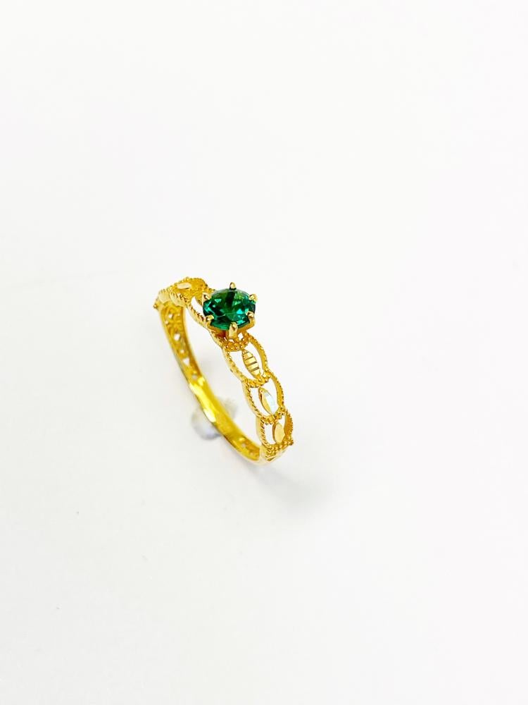 - ذهب فاخر مع فص أخضر متألق.