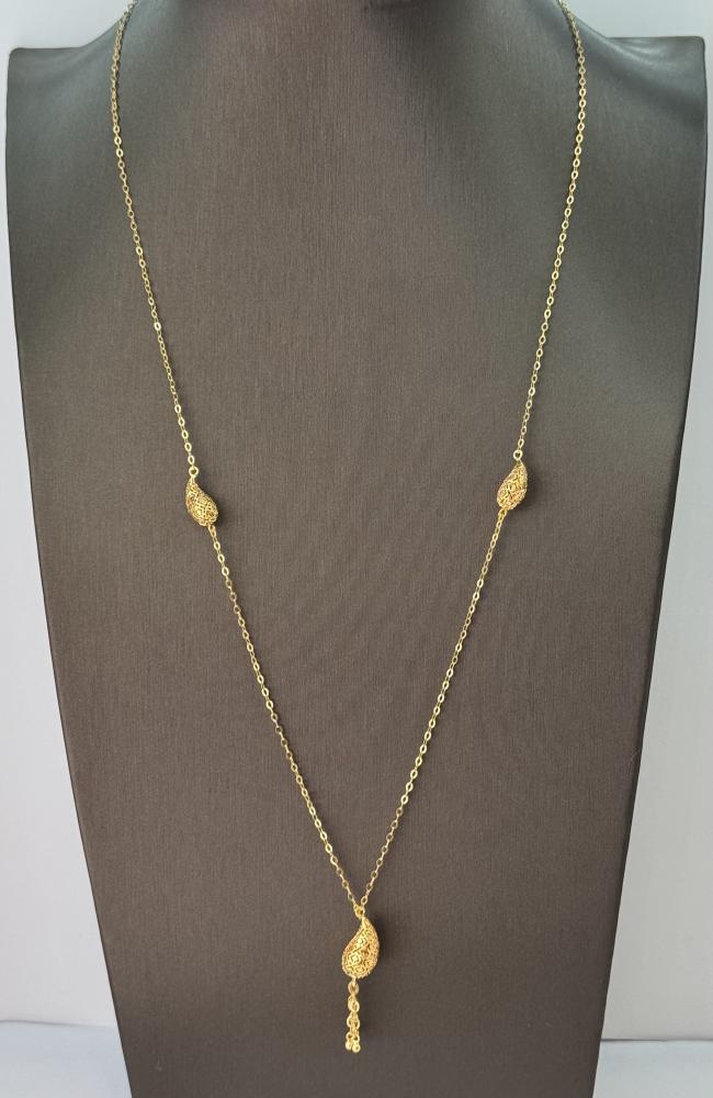 قطعة ذهبية بلمسة تقليدية وعصرية معًا. تتميز بوزنها المثالي وزخارفها المتدلية التي تضفي جاذبية وأناقة خاصة.