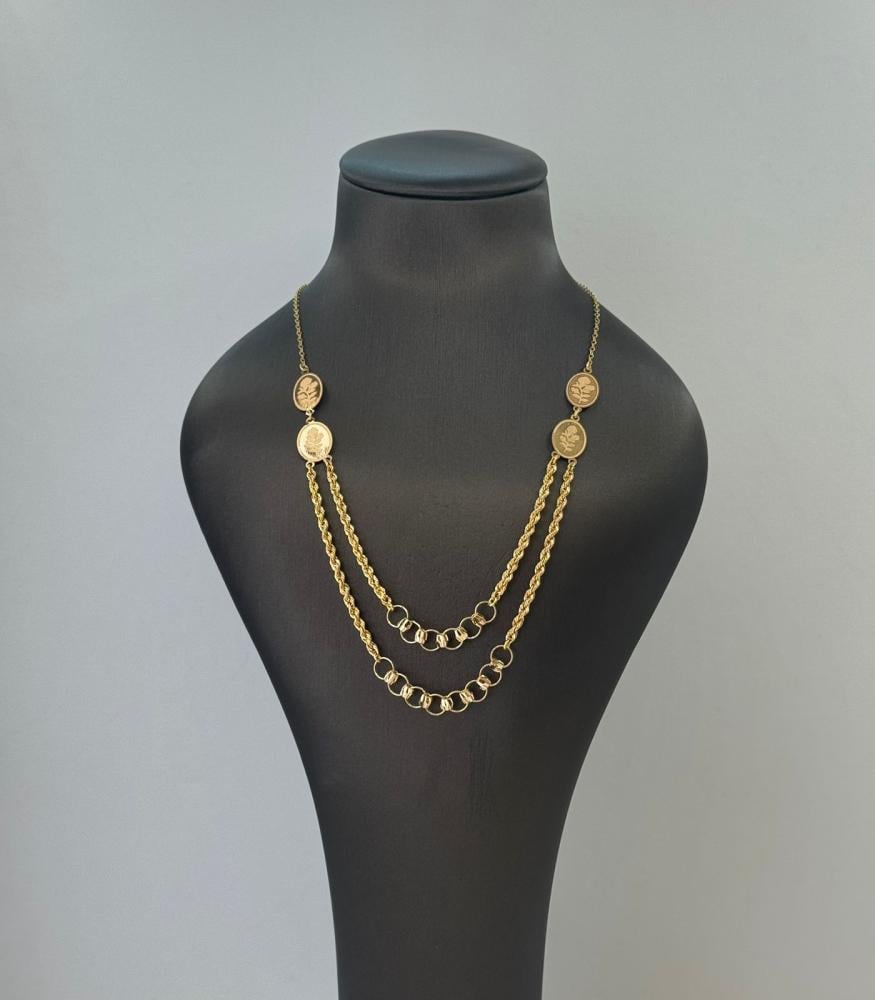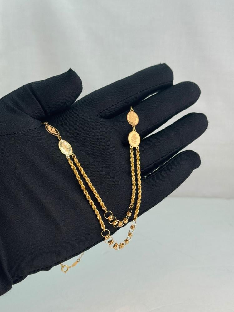 قطعة ذهبية بلمسة تقليدية وعصرية معًا. تتميز بوزنها المثالي وزخارفها المتدلية التي تضفي جاذبية وأناقة خاصة.