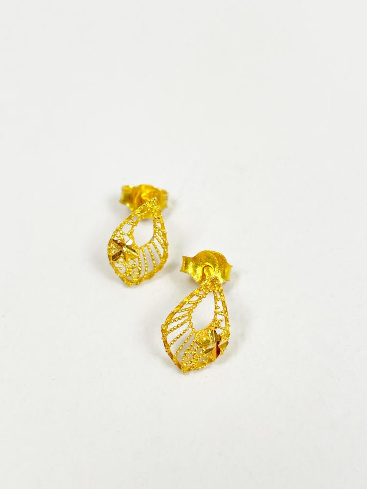 استمتعي بإطلالة لا مثيل لها مع نصف طقم ذهب فاخر بتصميم يجمع بين شكل المعين ودمعة مفرغة بطريقة فنية راقية