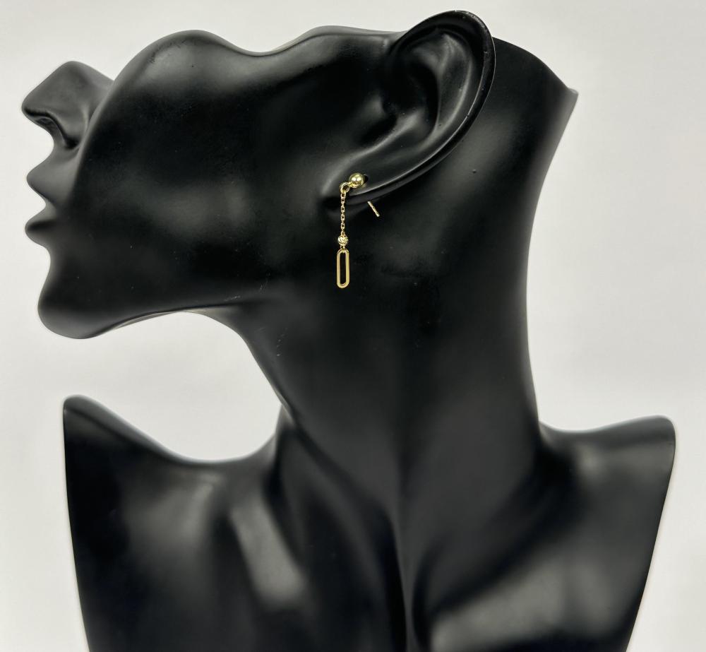 A light gold earring with a unique dangling design that gives you an elegant touch that suits casual and formal looks.